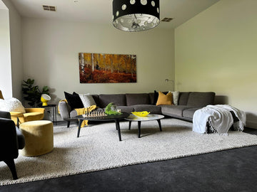 We all want to be in a space with rich colors, textures, and warmth. But when it comes to decorating with them, it can be difficult to know how to incorporate them in. When you have a space that is traditionally cold or muted, try adding in a hand-knotted wool rug in Pebble Stony Path which is warm with a flick of grey . Made out out of pure wool, this rug has traditional hand-woven ball-shaped loops that are plush.